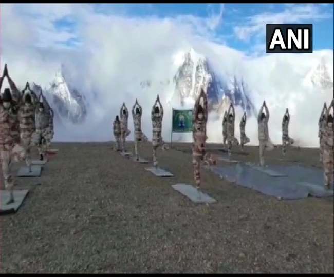 दुनियाभर में कोरोना वायरस (COVID-19) संकट के बीच आज आंतरारष्ट्रीय योग दिवस मनाया जा रहा है। इस दौरान भारत-चीन सीमा पर तैनात जवानों ने योगा किया। आइटीबीपी (भारत-तिब्बत सीमा पुलिस) के जवानों ने लद्दाख के खारदुंग ला में बर्फ की चादर पर 18,000 फीट की ऊंचाई और उत्तराखंड में बद्रीनाथ के पास वसुधारा ग्लेशियर पर 14,000 फीट की ऊंचाई पर योग किया। अरुणाचल प्रदेश में आइटीबीपी (भारत-तिब्बत सीमा पुलिस) पशु प्रशिक्षण स्कूल (एटीएस), लोहितपुर के कर्मियों ने आज अंतरराष्ट्रीय योग दिवस पर घोड़ों के साथ योग किया। आइटीबीपी के जवानों ने उत्तरी सिक्किम में 18,800 फीट की ऊंचाई पर योग किया।